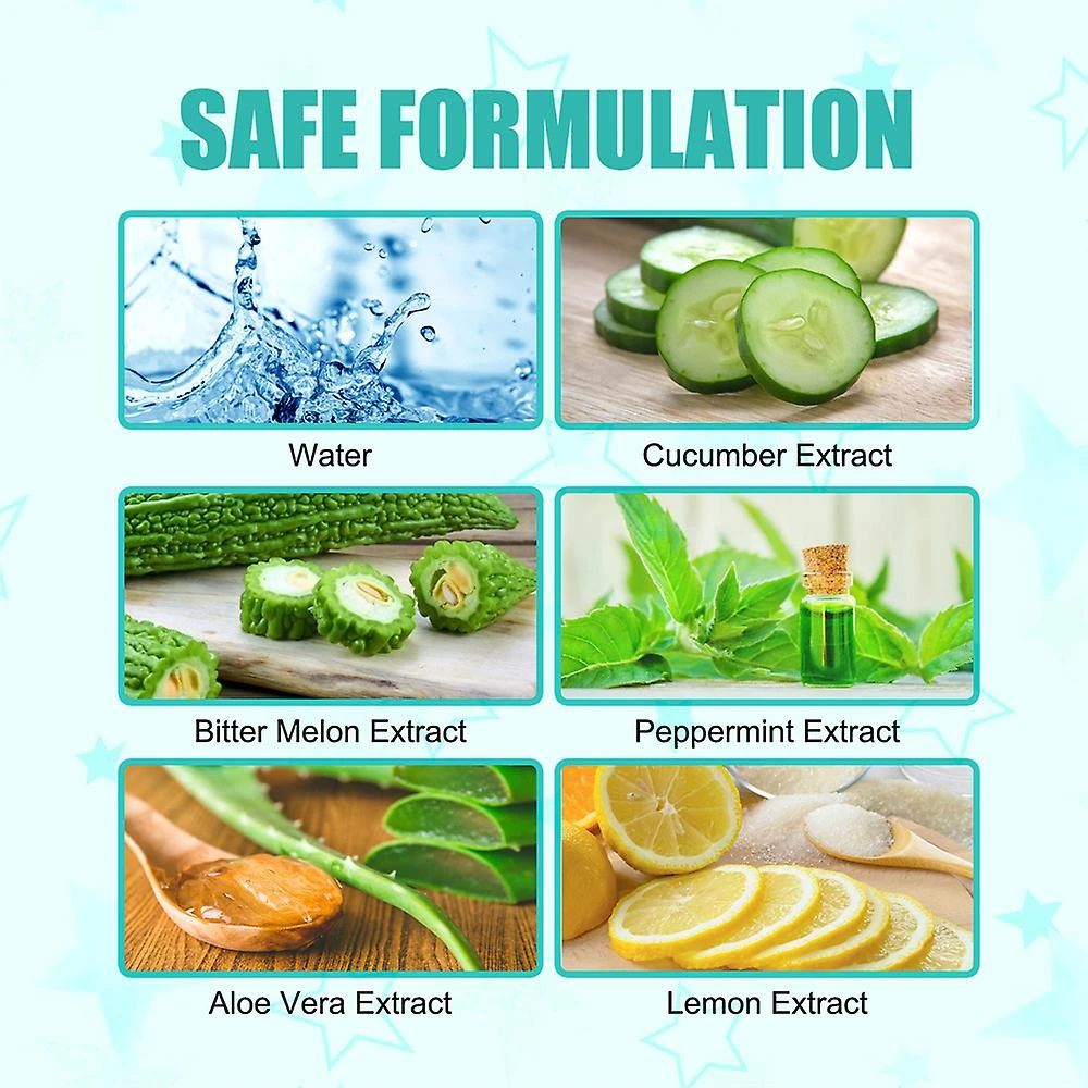 Ingredients: Water, Cucumber Extract, Bitter Melon Extract, Peppermint Extract, Aloe Vera Extract, Lemon Extract