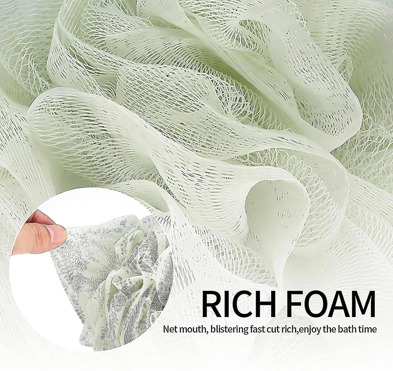 Portable DesignThe shower sponge ball is dense and strong, the hanging ribbon make the shower puffs can be hung up without worrying that the mesh will break. .
