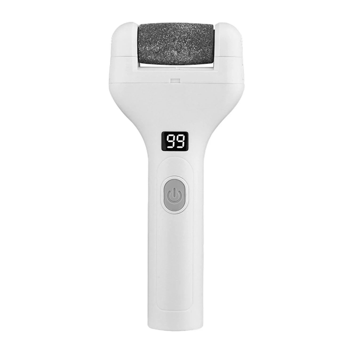 The electric foot file has 3 spare roller heads with different roughness. A fine scrub head is used for daily foot care; a medium scrub head is used to treat dead skin and peeling; a coarse scrub head is used for old and troublesome calluses.