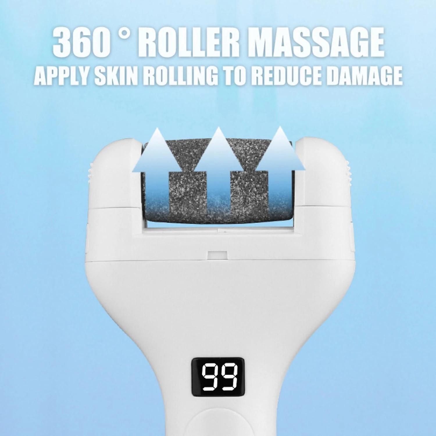 LED Power Display 1200mah large capacity lithium battery has overcharge protection and battery display function,you can see how much battery left and when to charge.The USB charging time for 3 hours,it can powerfully run continuously for about 90 minutes. Press the value once, and the roller head will automatically rotate 360 degrees at high speed to effectively dry, hardened and thick-skinned feet and the feet.
