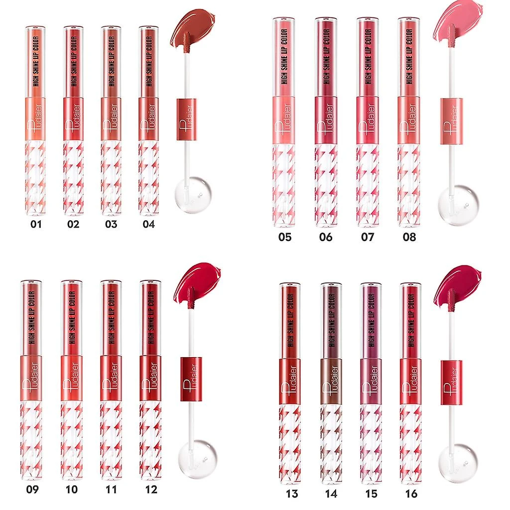 Shine liquid lipstick set are formulated to ensure high pigmented while maintaining the high-quality, quick drying comfortability.packed double head velvet-lipsticks and nutrition lipgloss that make it easy to create iconic-lip looks.