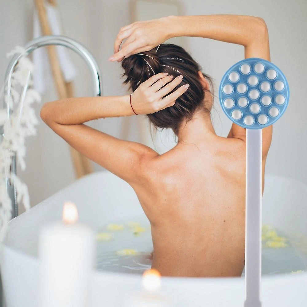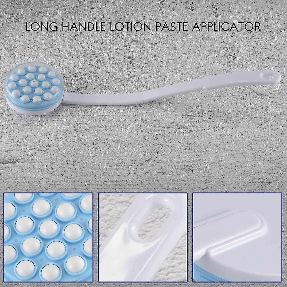 The unique design makes it easy to apply your favorite moisturizer or sunscreen to the applicator.Use non-toxic, skin-friendly, healthy quality materials.Its surface has a rotating ball that helps to apply a little pressure to the body evenly during massage, providing a comfortable and effective massage.The detachable long handle helps you to massage the area that your body can’t reach with your hands, and it’s easy to carry and clean.Weight: 198 gramsMaterial: PP + PSColor: Blue + white length: about 45CMHead diameter: about 92CMPackage Contents:1 * applicator head with lid1 * handleOnly the above package content, other products are not included.Note: