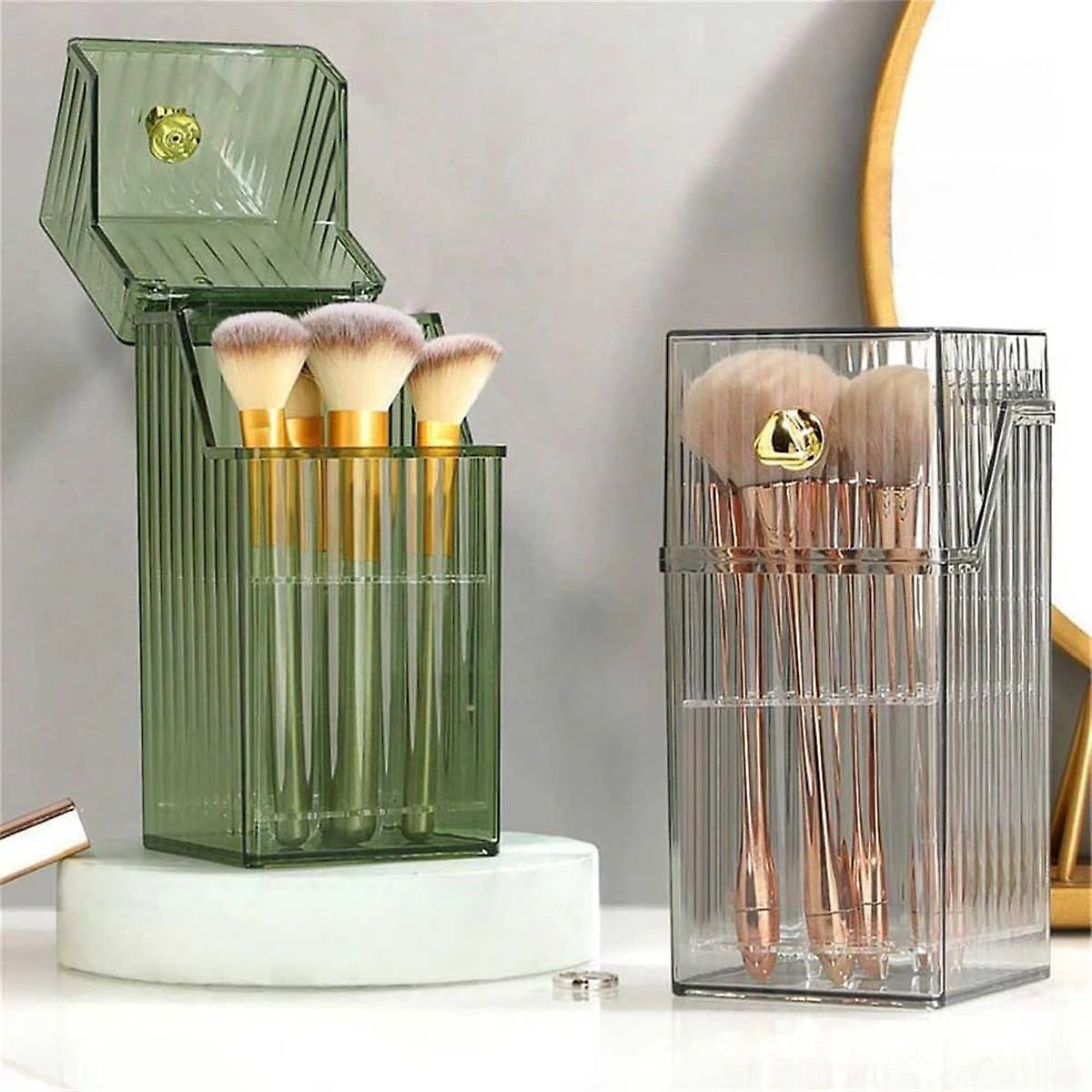 [High-Quality Materials] – Clear Plastic makeup brush holder with lid. your brushes remain in an upright position with our clear plastic makeup brush holder.