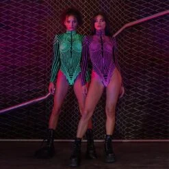 Uv Reactive Neon Bodysuit – Ideal For Halloween & Christmas Parties L Green