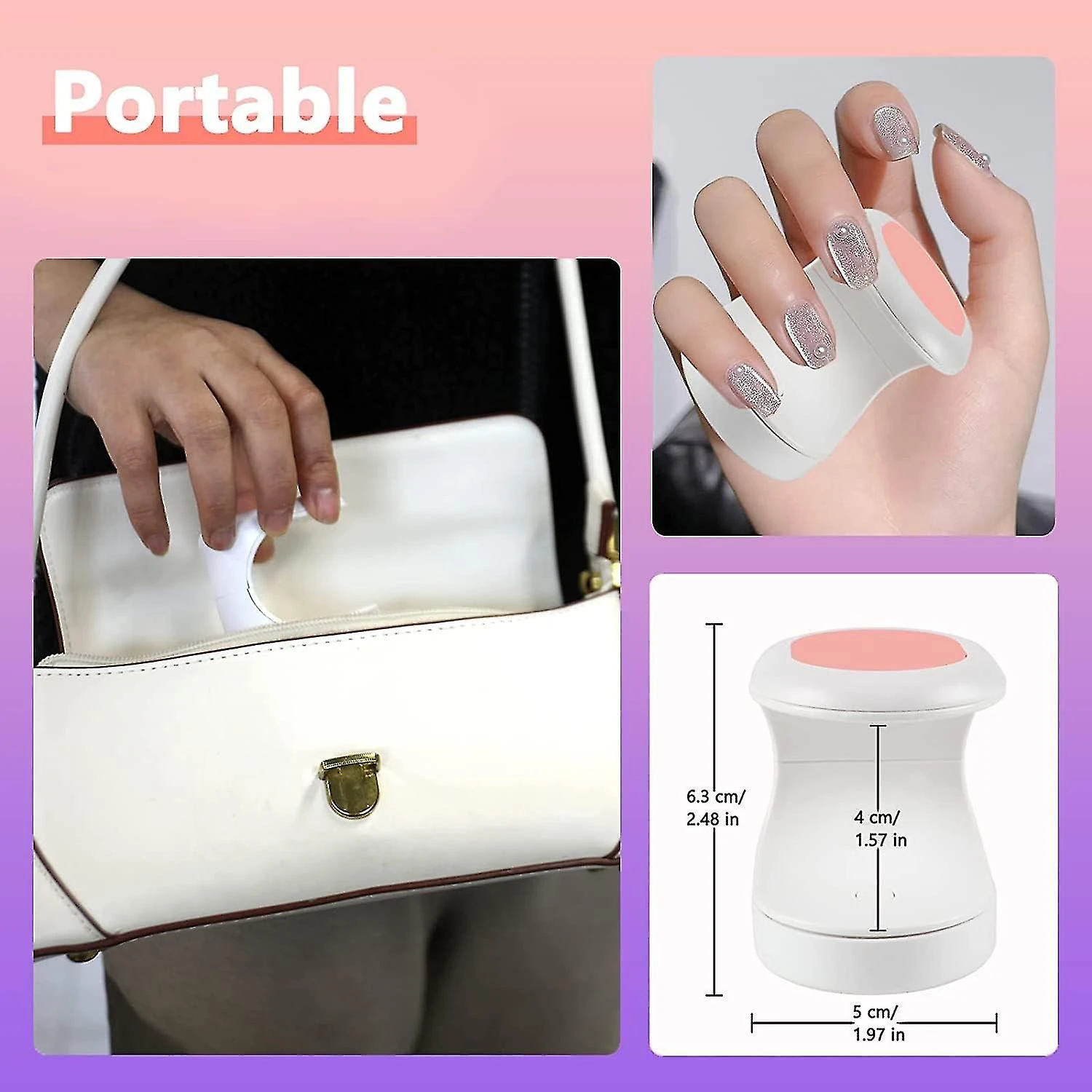 [Safety] UV/LED dual light source design, power 16W. Low in calories and safe for skin and eyes. USB interface, high efficiency. The portable UV LED nail dryer can be connected to a computer, power supply and mobile phone charger through the USB port.Easy to UseConnect the USB data cable and turn on the switch of the mini UV LED light to use. It will automatically turn off after 60 seconds, which is convenient and fast. It can quickly cure all kinds of nail glue, gel nail glue, extension glue, etc.