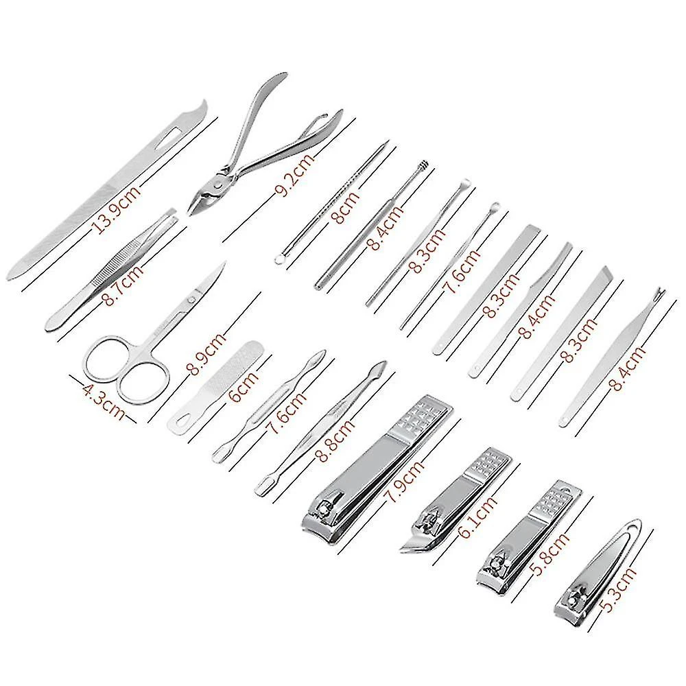 2.PRODUCT CONTAINMANICURE KIT—- The pedicure manicure kit Includes Large nail clipper ,medium nail clipper , oblique nail clipper , manicure plier, acne needle , scraper ,nail file , double-headed pick, eyebrow clip vibrissac scissors, dig ear spoon , dead skin fork , eyebrow cut Acne Bowl Needle, Flat Callus Remover, Oblique Callus Remover, Spiral Ear Spoon, Oblique Callus Remover, Double pick. These nail cutter set made of high density stainless Steel. They are the best nail scisso