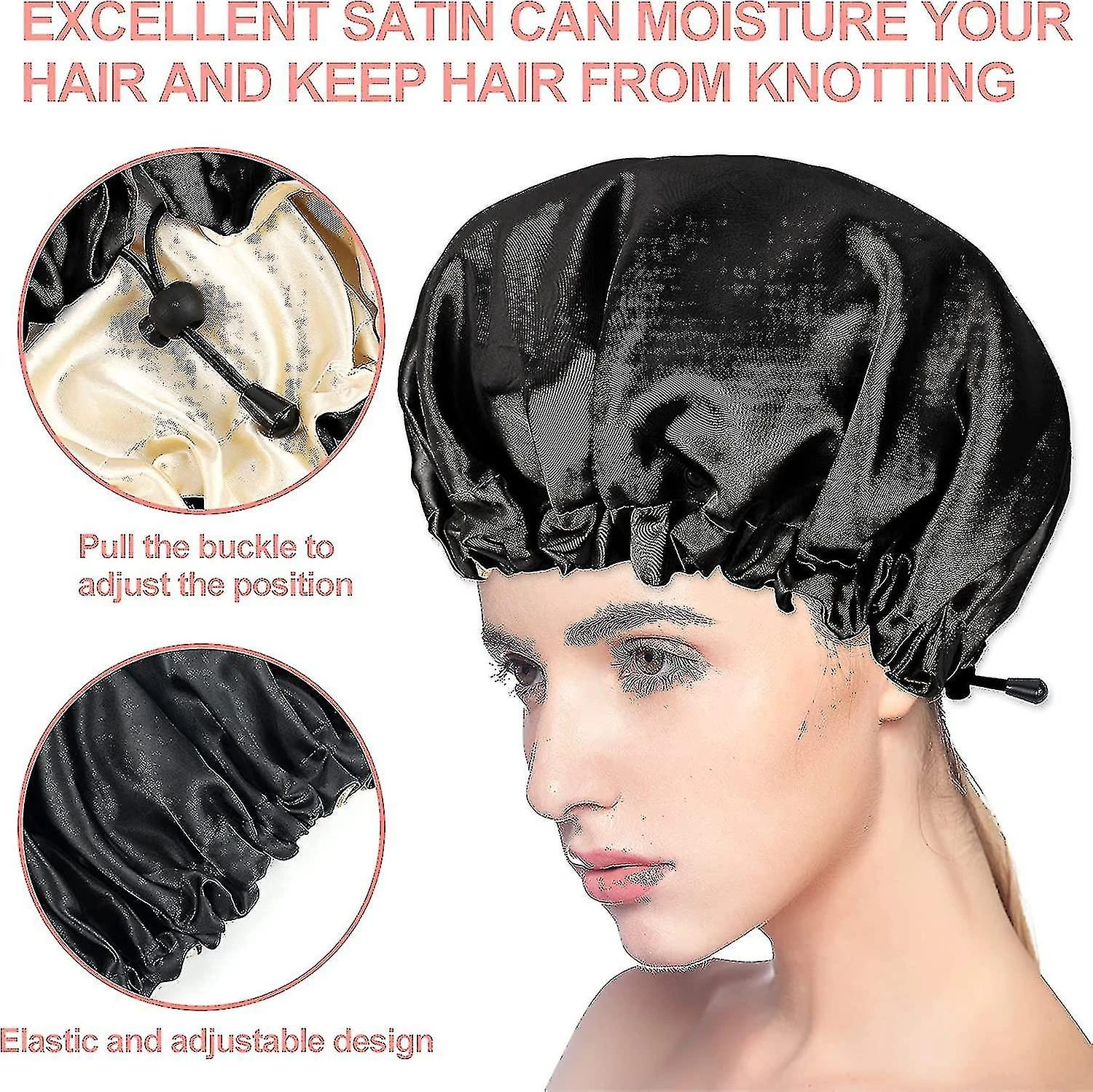 YIXUAN This kind of satin bonnet is flexible enough to cover all sizes of head and hair. It can double hair care, and the hood can reduce hair loss. The hair bonnet will not make your hair feel difficult to breathe. The satin hair is very comfortable and can keep the hair intact. To make it easier for the hair to get into the inside, you can tie the hair into a loose knot, put on a hair cap, and then shake the hair to loosen the knot, so that the hair will fall loosely into the sleep cap. [Size] The size of the satin bonnet can be adjusted. The maximum diameter of the sleep cap in a relaxed state is approximately 38 cm/14.17 inchesYou can adjust the size to fit your head to make the head more comfortable. [Protect Hair] Suitable for most hair styles, this kind of satin night cap can protect the hair to the greatest extent and prevent the hair from knotting, such as natural hair, long hair, curly hair, braids, wavy hair, straight hair, etc. If you have curly or wavy hair, sleeping can make your curly hair a mess. Our satin bonnet are designed with full coverage high-quality satin, which can reduce friction between your hair, and protect your fabulous and expensive hairstyle while you sleep. [High-quality Fabric] Soft and smooth light satin fabric, excellent fabric is especially suitable for skin use. Unlike other curly hair cap used for curly hair, this hair hat will not fade easily. This hair bonnets for sleeping is very soft and comfortable. It is as soft as mulberry silk and very comfortable to wear. [Multi-purpose] The satin bonnet is very convenient for daily use. This satin hood is not only suitable for sleeping, but you can also wear it to wash your face, make up or take a bath, or even do housework. It is a good helper. The nightcap can also be used as a satin hat for cancer and chemotherapy patients because the hat can prevent severe hair loss. Colour: Black Size: One size, 38cm in diameter Quantity delivered: 2 pieces